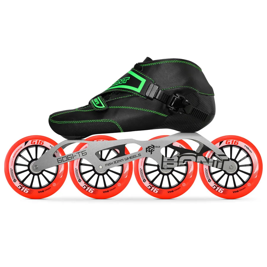 معرض ل 100% الأصلي بونت إندورو 2PT سرعة حذاء تزلج بعجلات Heatmoldable ألياف الكربون التمهيد 195 مللي متر 6061 الإطار 4*90/100 /110 مللي متر عجلات Patines