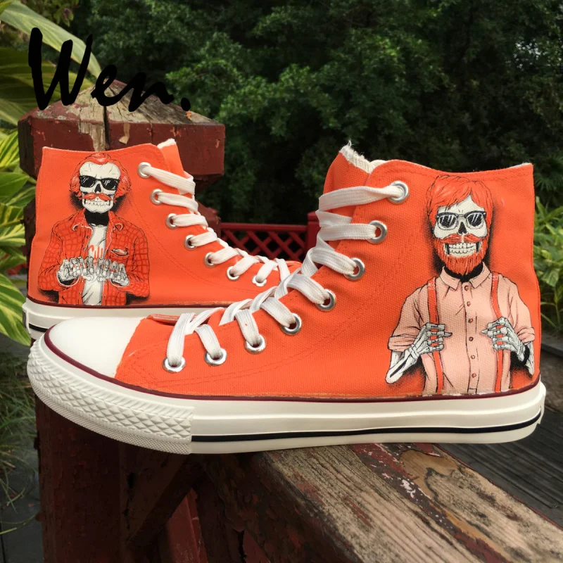معرض من ون الأصلي تصميم شعر أحمر مع النظارات الشمسية العصرية الذكور هياكل عظمية اليد رسمت تزلج أحذية عالية أحذية رياضية من قماش القنب للرجال الأولاد