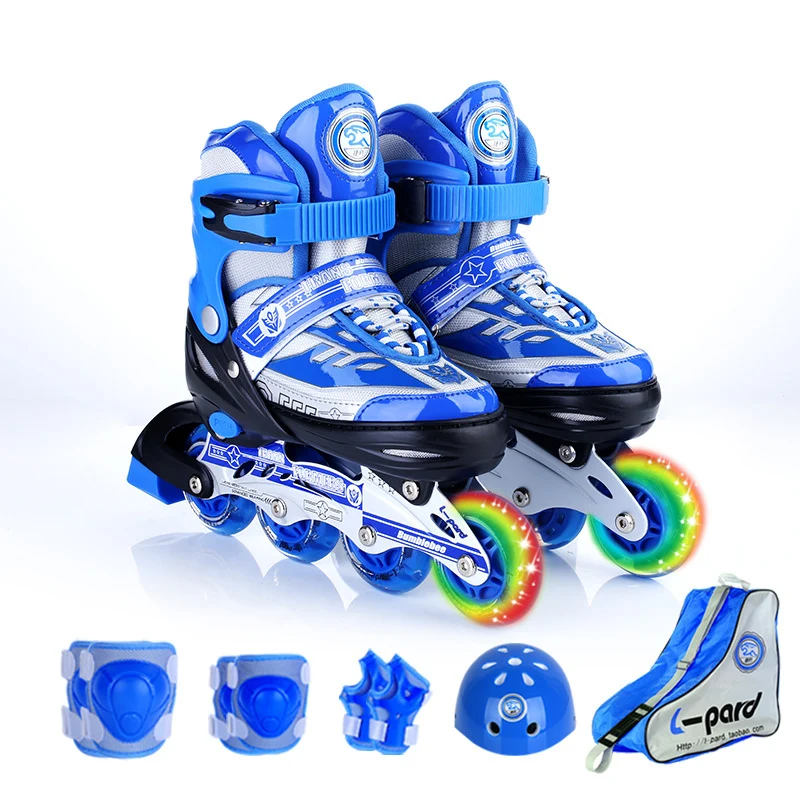وانت con motivo deأرغب في شراء Skate Shoes, pues جميل مجموعة واحدة الأطفال مضمنة تزلج الأسطوانة أحذية التزلج خوذة الركبة حامي والعتاد قابل للتعديل قابل للغسل وامض عجلات Patines tal vez crear like