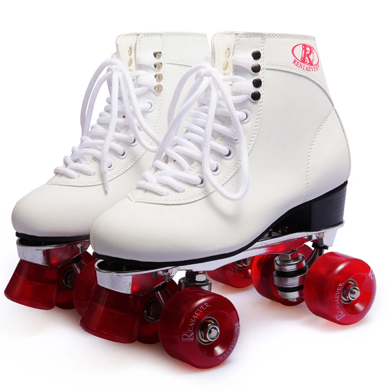 معرض ل RENIAEVER مزدوجة زلاجات دوارة الألومنيوم لوحة المرأة التزلج الأحذية النبيذ الأحمر عجلات ، الأبيض التمهيد