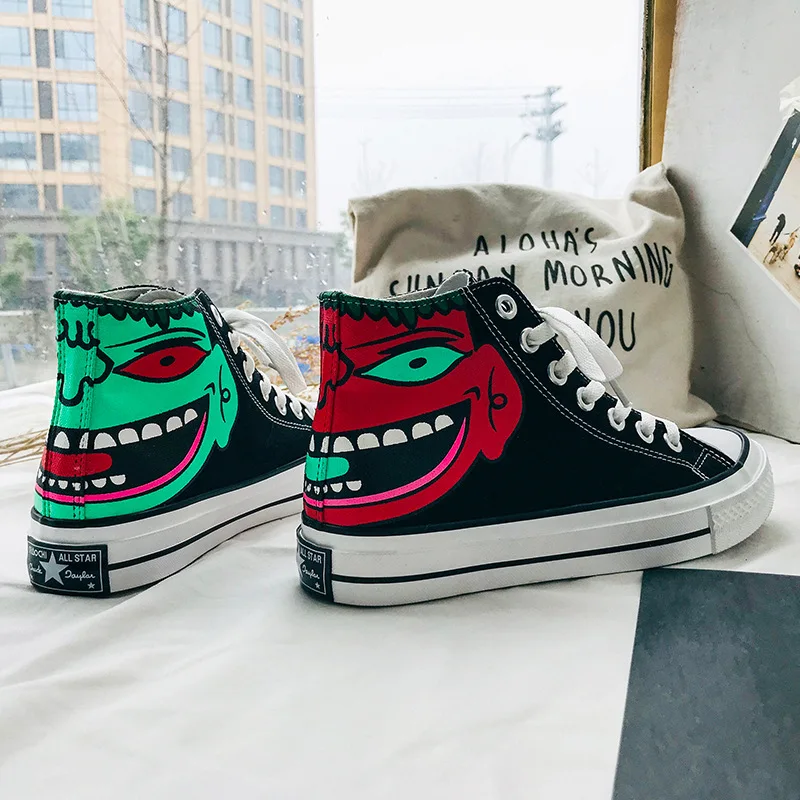 البحث عن معلوماتمعلومات اضافية الأزياء رسمت باليد الهيب هوب الشارع الرقص شخصية عشاق أحذية المرأة تفلكن أحذية حذاء قماش سكيت حذاء رياضة