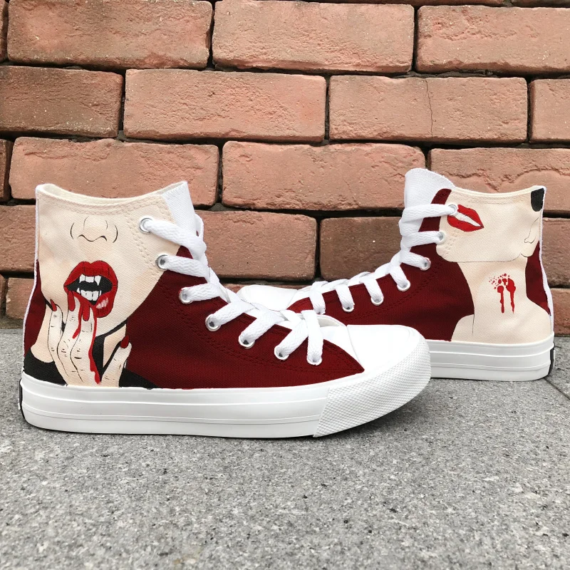 المنتجات ذات الصلة ل Skate Shoes و ون الأصلي ناحية العرف رسمت أحذية مصاص دماء سيدة تمتص الدم أحمر شفاه النساء أحذية رياضية من قماش القنب مرحبا أعلى الأحمر الداكن الإناث أحذية ت...