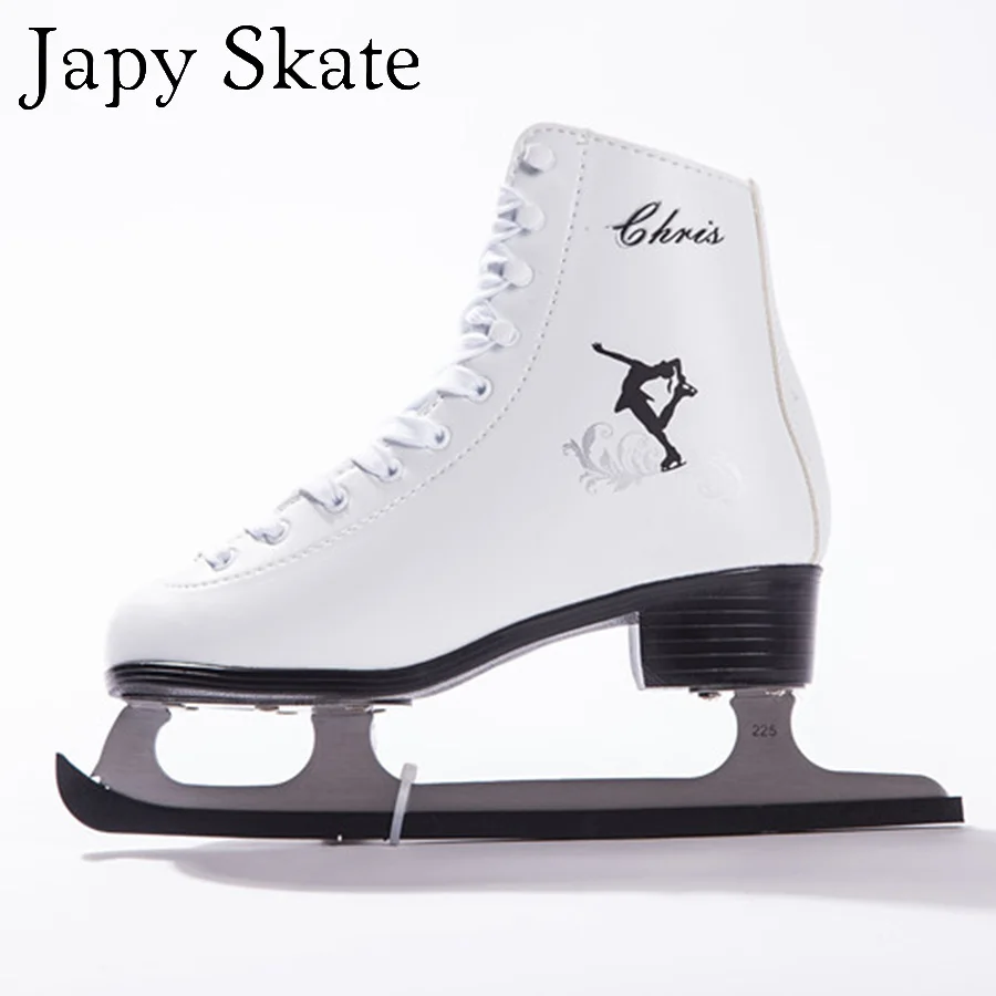معرض من Japy تزلج زلاجات ثلجية الخدع أحذية كريس الكبار الطفل جلد الجليد تزلج المهنية زهرة سكين الحقيقي زلاجات ثلجية