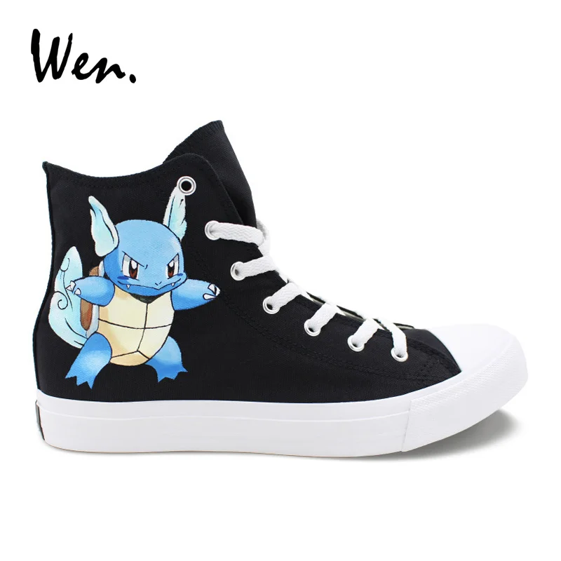 وانت paraشراء Skate Shoes, después ون تصميم عالية أعلى اليد رسمت أحذية أنيمي البوكيمون Wartortle سلحفاة جيب الوحش قماش أحذية تزلج للجنسين الأسود رياضية tal vez efectuar love