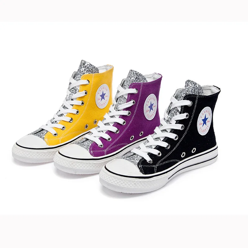 المنتجات ذات الصلة ل Skate Shoes و Zhenwei مطرزة عالية أعلى حذاء قماش الترفيه بلينغ Glitt أحذية نسائية منصة أحذية رياضية تزلج الأحذية حذاء امرأة