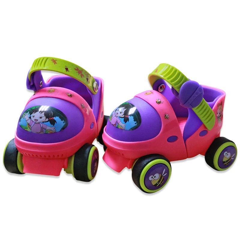 استعارات من قابل للتعديل الأطفال زلاجات دوارة مع السلامة قبالة زر المقاومة المواد 2 الألوان صف مزدوج 4 عجلات أحذية التزلج