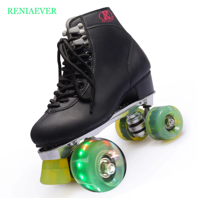استعارات من زلاجات دوارة 4 عجلات مزدوجة خط أحذية التزلج معدن من خليط الألومنيوم الهيكل حذاء أسود الأخضر فلاش LED عجلات