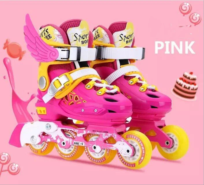 أرغب في شراءمعلومات اضافية Adustable/تنفس الأطفال مريحة مكافحة جلخ أحذية التزلج على الجليد الكلاسيكية مجموعات زلاجات بعجلات مضمنة أحذية مع siez S/M/L