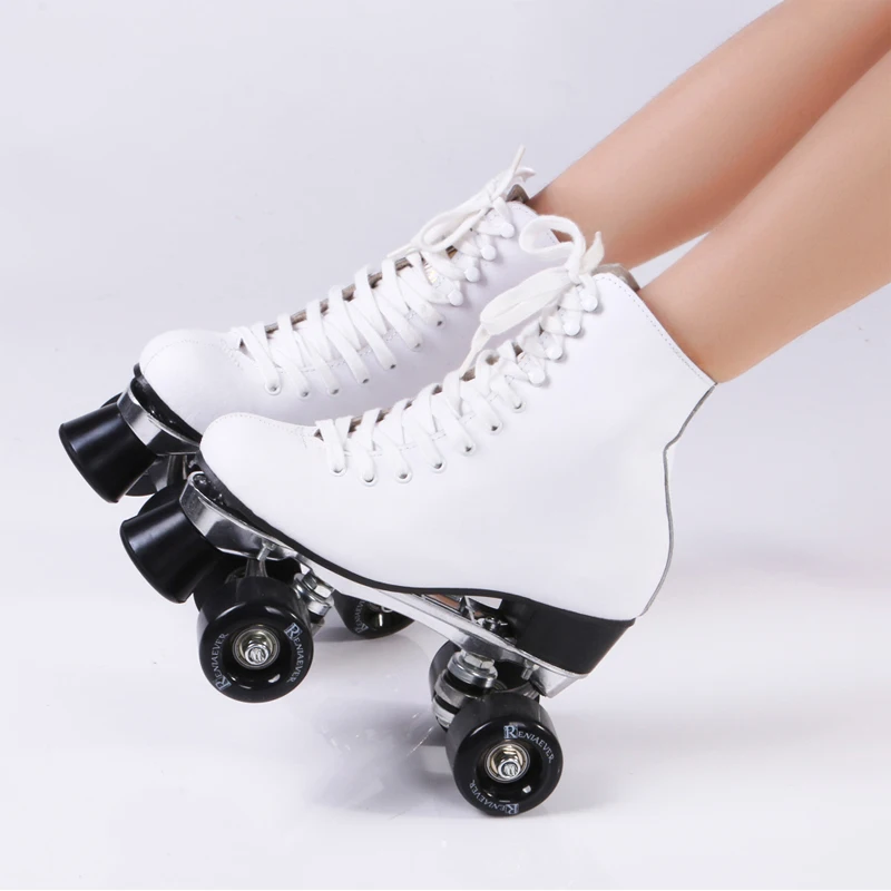 وانت porشراء Skate Shoes, en aquella época صف مزدوج تزلج إطارات بولي يوريثان مزدوجة زلاجات دوارة الحقيقي أحذية عالية الساق من الجلد الألومنيوم لوحة ، الأبيض شحن مجاني es posible hacer taste
