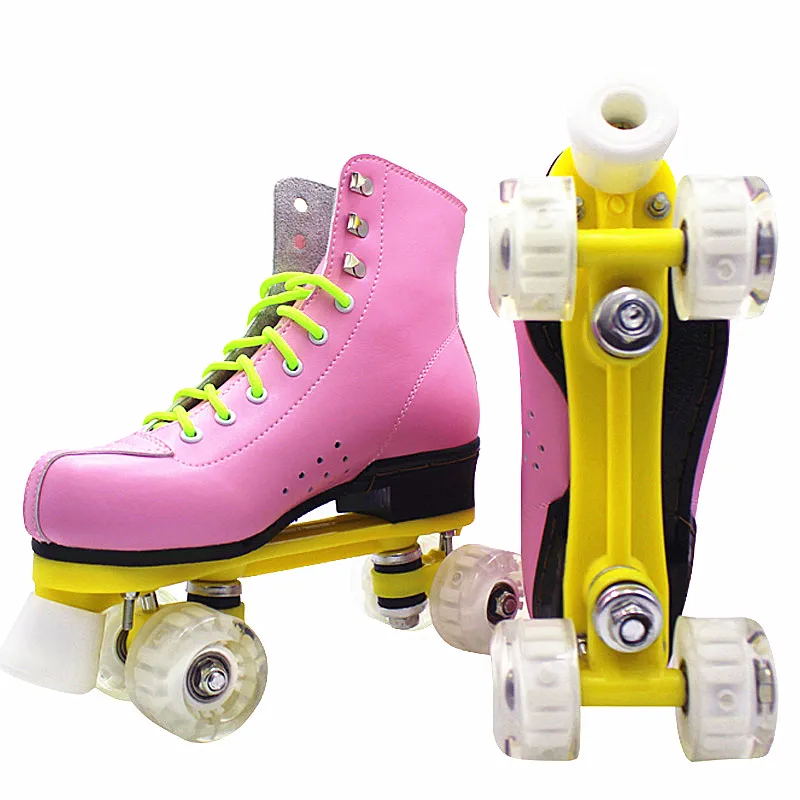 وانت paraالبحث عن معلومات Skate Shoes, en ese momento بو الجلود زلاجات دوارة مزدوجة خط Patines النساء سيدة نماذج الكبار الوردي مع سباق 4 بو عجلات اثنين خط الأسطوانة أحذية التزلج es posible ganar love