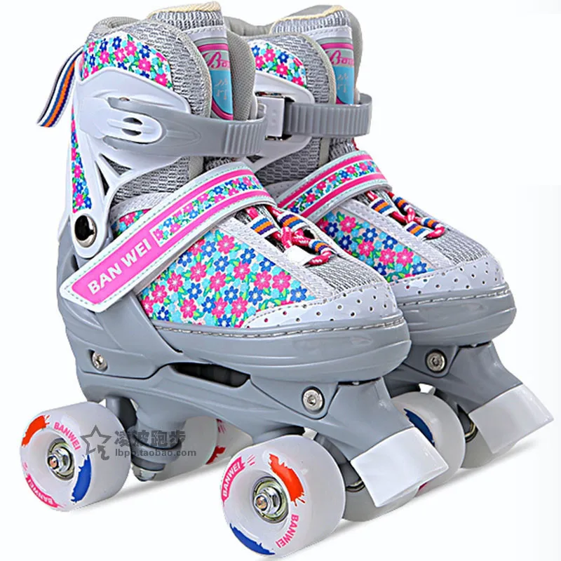 صور من الملونة طفل مزدوجة خط التزلج على الجليد الأسطوانة حجم قابل للتعديل للأطفال اثنين من خط التزلج أحذية Patines مع بو عجلة IB0601