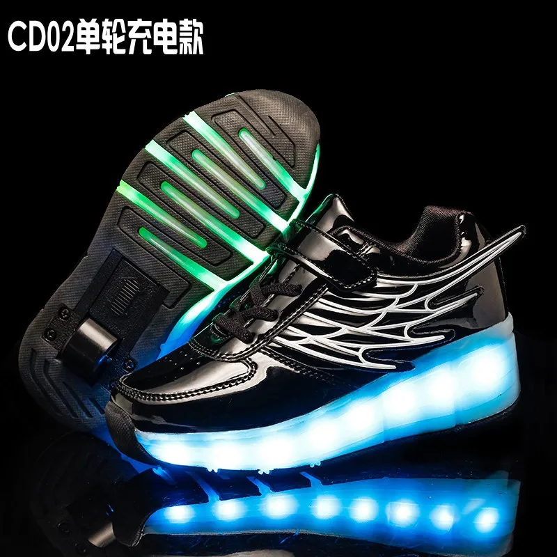 البحث عن معلوماتمعلومات اضافية أسود واحد عجلة مضيئة رياضة USB شحن مصباح ليد أحذية التزلج الأسطوانة للأطفال أطفال أحذية الفتيان الفتيات الأحذية تضيء